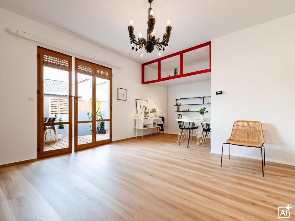 L'immobile si presente con ingresso nel disimpegno da cui si accede all'ampia zona giorno con cucina a vista e porta finestra che conduce al balcone esposto a Sud-Ovest.