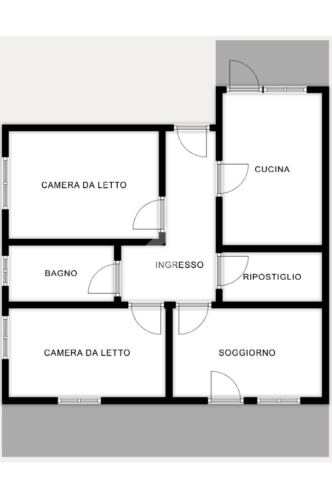 L'appartamento si sviluppa con ingresso nel corridoio che fa da disimpegno a tutti gli ambienti.