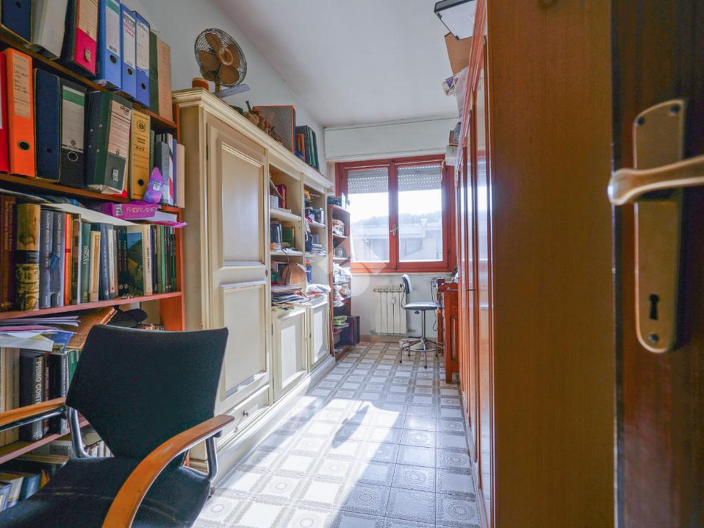 Attraverso il disimpegno troviamo le camere da letto, di cui tre matrimoniali e una singola, da cui si accede alla seconda ampia terrazza. I doppi servizi, entrambi ciechi con box doccia e ventola.