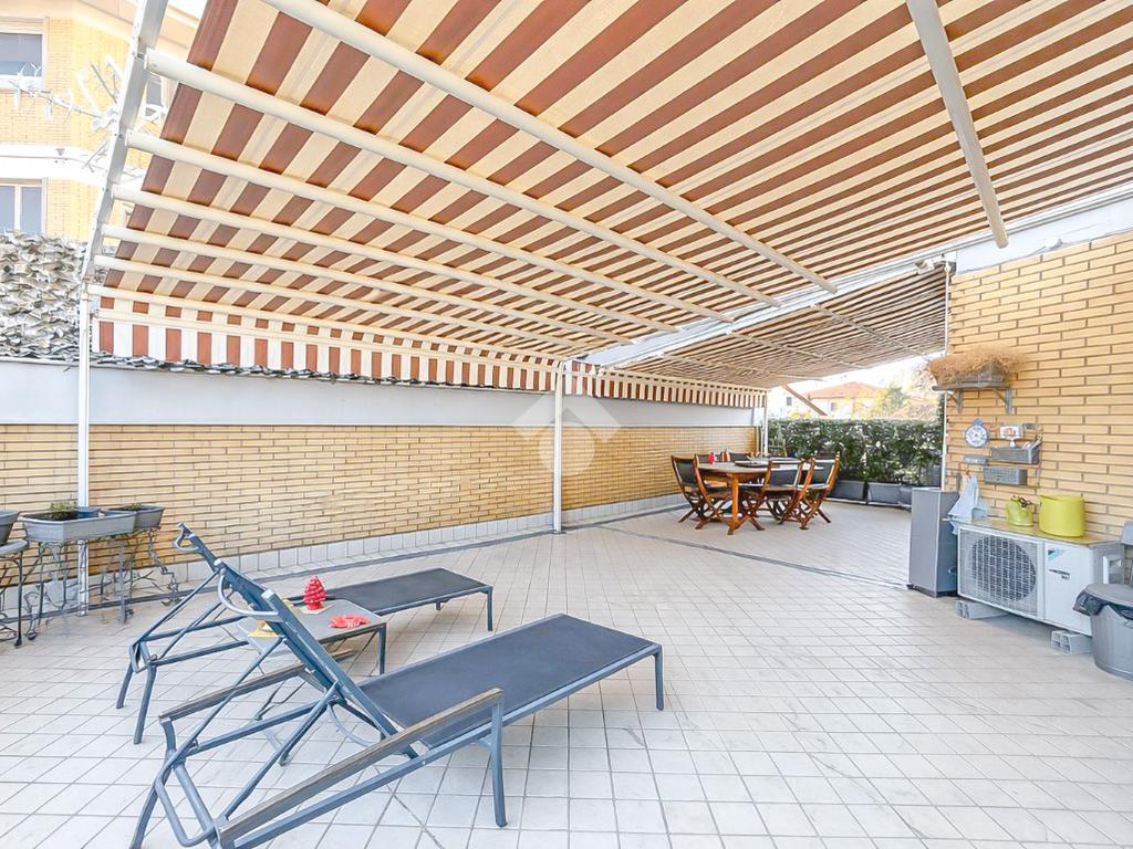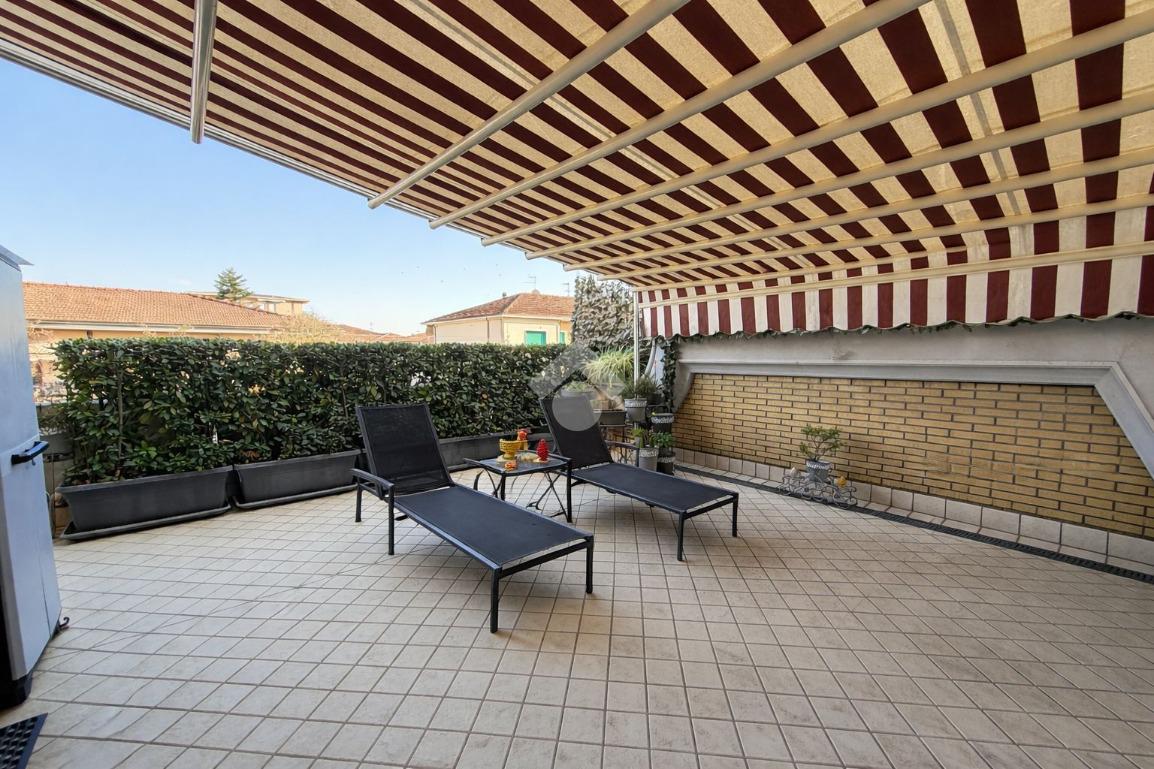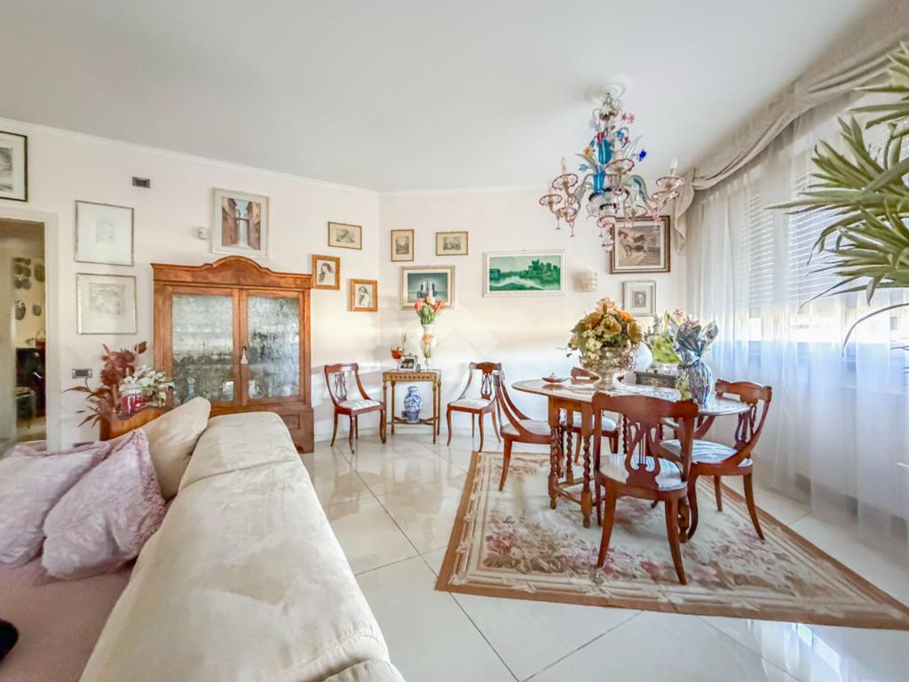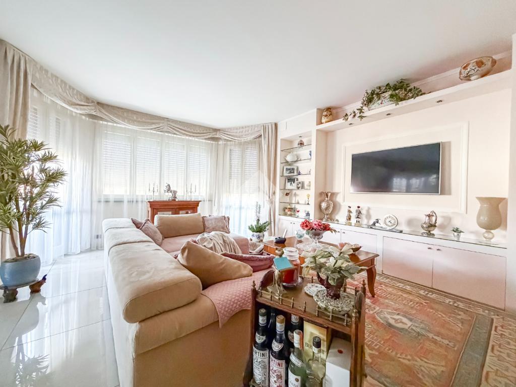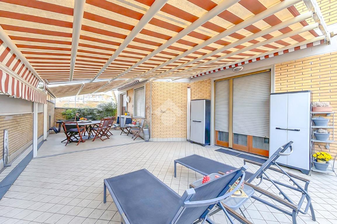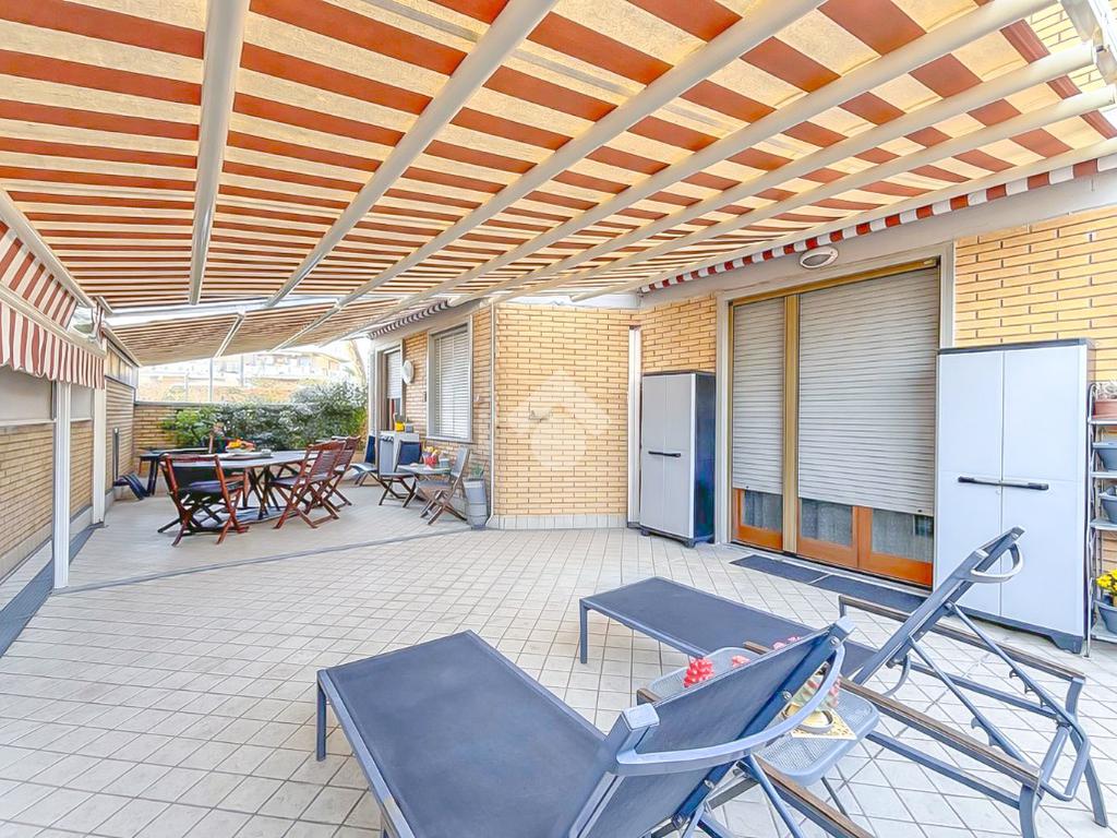 L'immobile, recentemente ristrutturato e di ampie metrature, si presenta con l'ingresso che porta alla zona giorno, composta da un'ampia sala luminosa e la cucina abitabile. Tramite porte-finestre si accede all'ampia terrazza e ai due balconi privati.