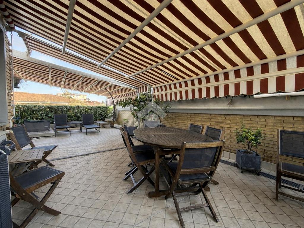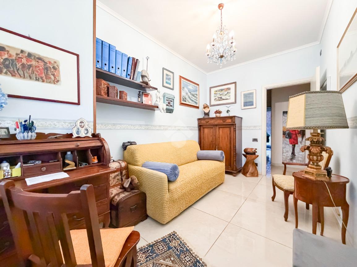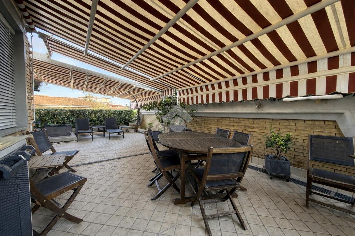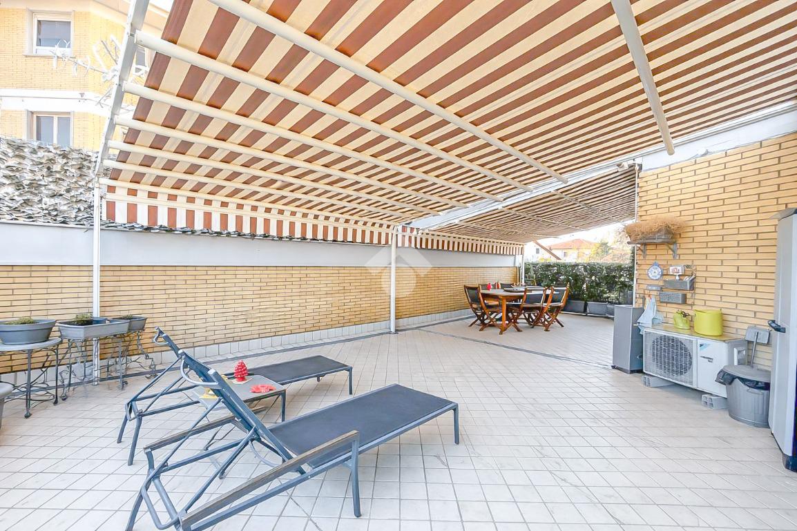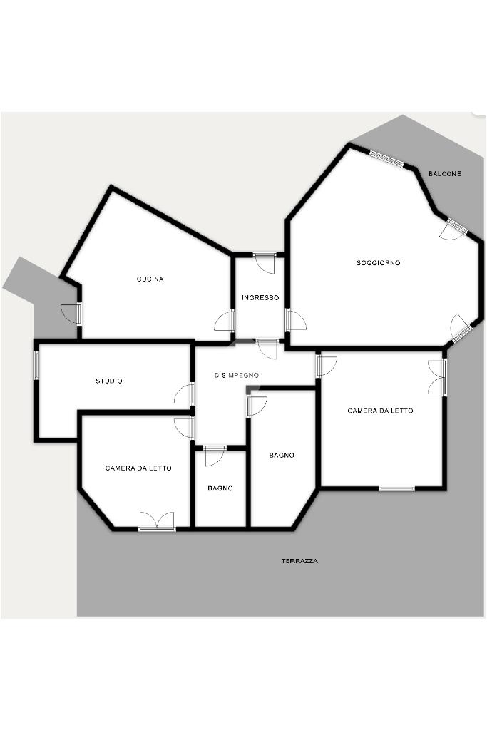 L'immobile, recentemente ristrutturato e di ampie metrature, si presenta con l'ingresso che porta alla zona giorno, composta da un'ampia sala luminosa e la cucina abitabile. Tramite porte-finestre si accede all'ampia terrazza e ai due balconi privati.