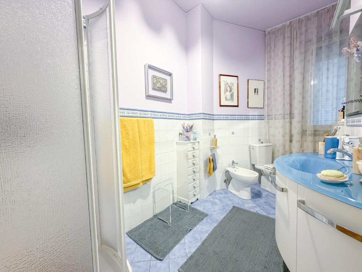 Tramite il disimpegno arriviamo alla zona notte, composta da ben tre camere da letto, di cui due matimoniali e con accesso alla terrazza. La terza camera è singola, può essere anche sfruttata come studio. La casa dispone di doppi servizi, entrambi finestrati. E' presente anche l'impianto di climatizzazione caldo/freddo nelle stanze, il riscaldamento è autonomo a radiatori.