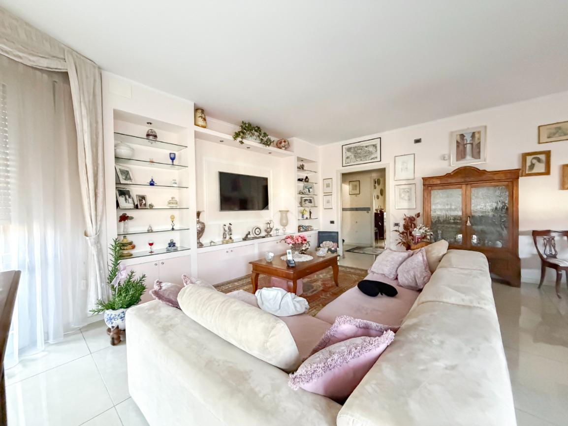 Marina di Massa - In centro, a pochi passi dalla piazza principale e alle spiagge, proponiamo in vendita appartamento di 5 locali, situato al primo piano di palazzina fornita di ascensore. Con doppi servizi, ampia terrazza privata e box auto incluso nel prezzo.