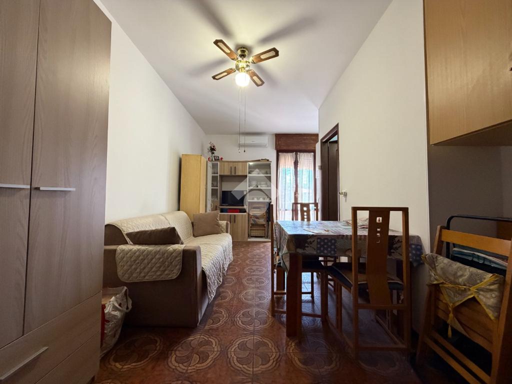 L'immobile situato in un ottimo contesto condominiale presenta un ampio vano con cucina a vista e divano letto.